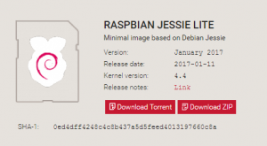 The version at the time of this writing is Jesse. For this setup we will use the LITE version of Jesse as we do not need a Desktop GUI. This will help to save space on the SD Card among other things.