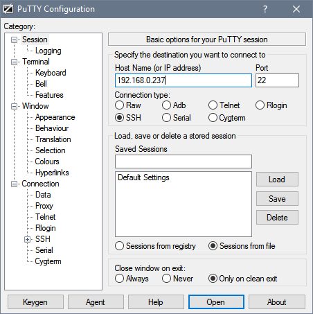 From your computer, open Putty and enter the IP you got from the last step and click Open