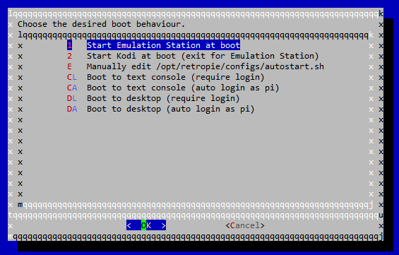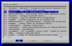 Once that completes, select Configuration / Tools > 802 – autostart > 1 – Start Emulation Station at boot