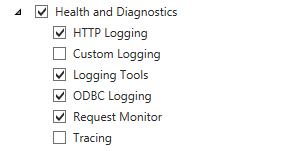 Role Services for IIS: (leave the default and add the following)