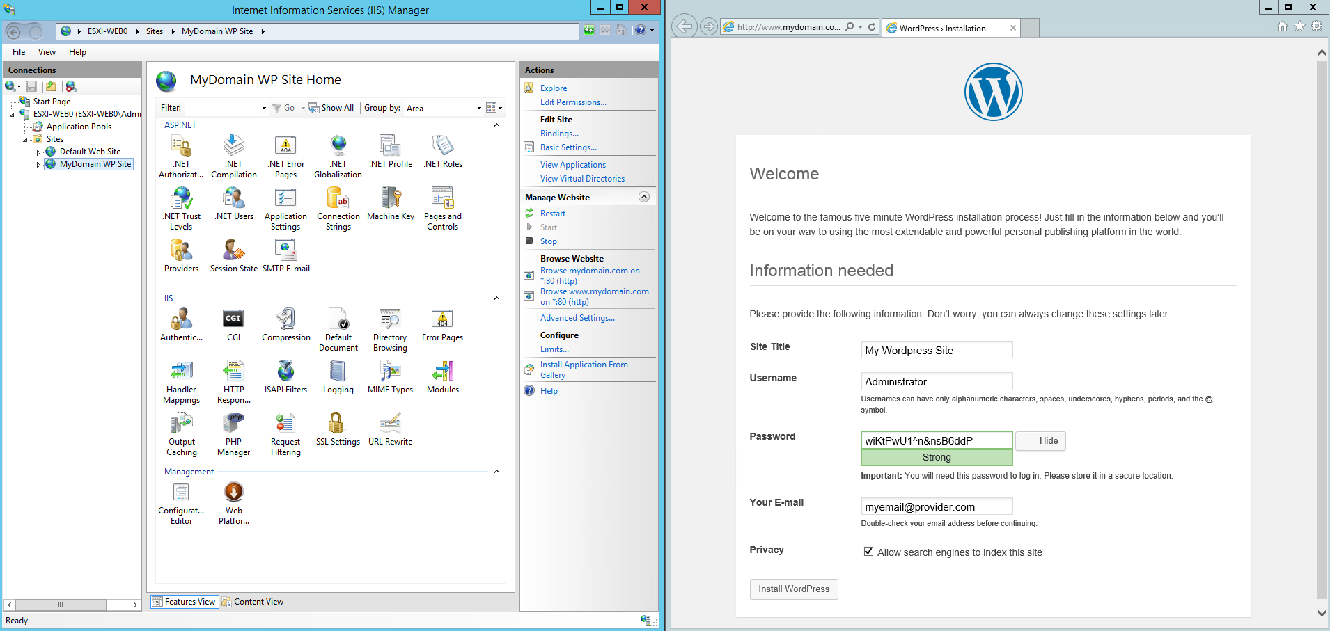 - Site Name: MyDomain WP Site (arbitrary, just make it identifiable)
