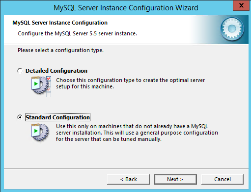 First install MySQL 5.5.45 and at the end of the installation, leave the box checked and you will enter the Instance Configuration.